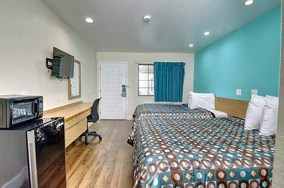 On arrival, a 24-hour front desk is ready to help with questions or requests, and an outdoor pool offers a refreshing break under the California sun. Air conditioning keeps interiors comfortable after a day on the road.